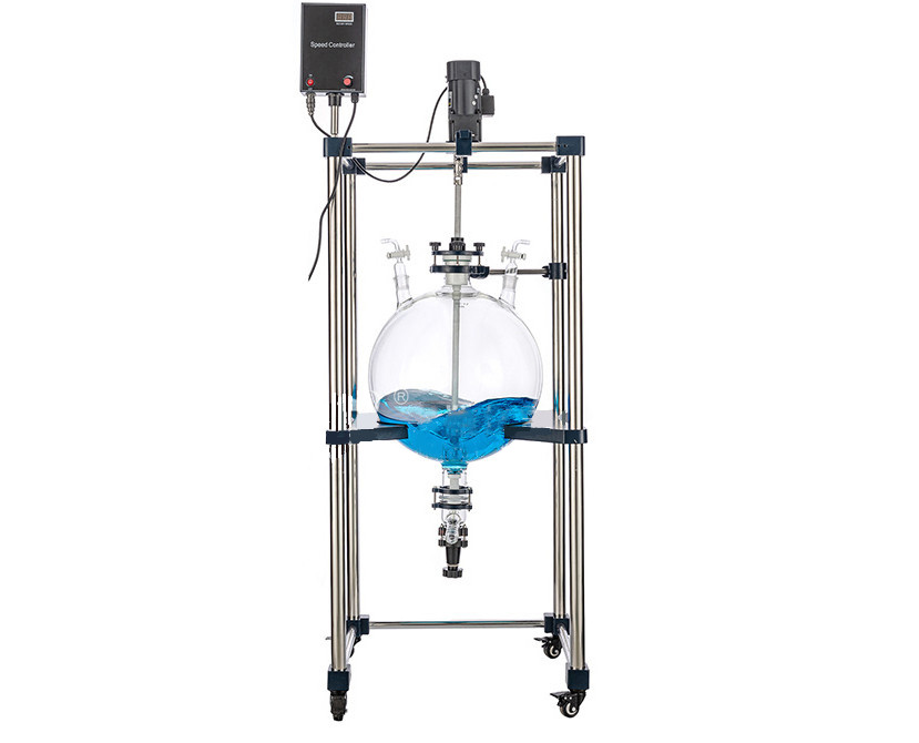 本機(jī)的電動(dòng)恒速攪拌系統(tǒng),對(duì)釜內(nèi)原材料進(jìn)行均勻攪拌,使物料在釜內(nèi)充分反應(yīng),反應(yīng)完畢后,關(guān)閉攪拌系統(tǒng),待物料澄清分層后,通過玻璃放料閥進(jìn)行逐層放液。