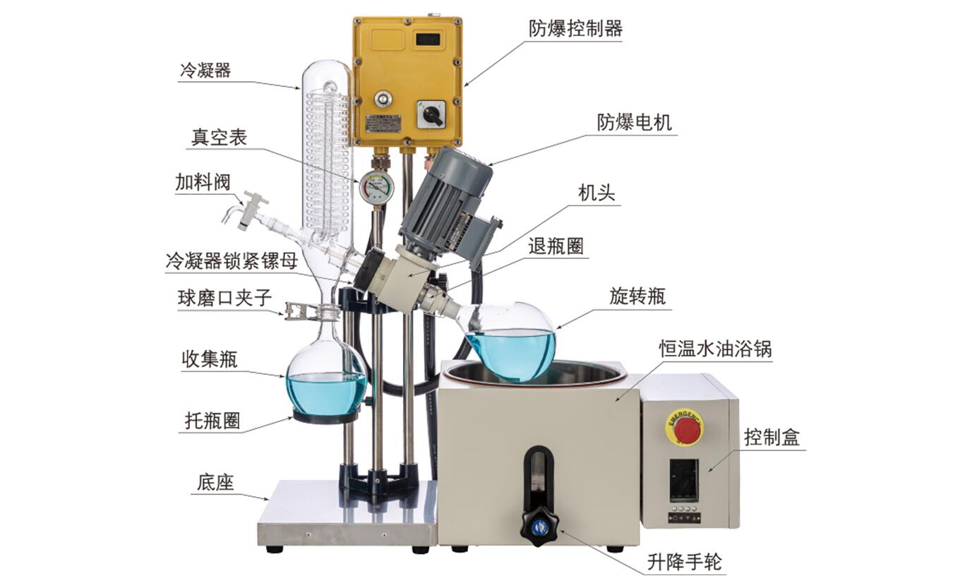 防爆旋轉(zhuǎn)蒸發(fā)器主要用于在減壓條件下連續(xù)蒸餾大量易揮發(fā)性溶劑。尤其對萃取液的濃縮和色譜分離時的接收液的蒸餾,可以分離和純化反應(yīng)產(chǎn)物。