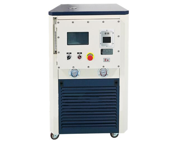 目前,本裝置采用機械制冷的方式,用壓縮機來制冷,用加熱管加熱來獲取高溫,加熱和制冷之間可以迅速切換,升溫和降溫的速率非???,并且高溫時沒有油霧的產(chǎn)生,低溫時沒有水汽的吸收,整個系統(tǒng)是密閉的,還做了防爆裝置,安全問題不用多慮。高低溫循環(huán)裝置加熱和制冷,實現(xiàn)了兩機合一,大大節(jié)省了空間,也提高了實現(xiàn)效率。