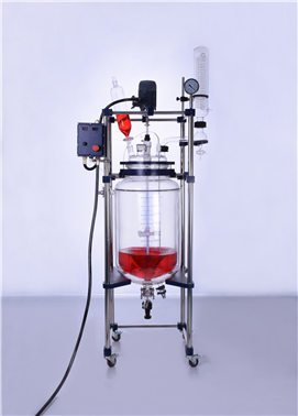 本玻璃反應器由GG17高硼硅玻璃與304不銹鋼材料制成,包括釜蓋、釜體(雙層玻璃反應器)、冷凝器、蒸餾瓶、恒壓滴液漏斗、攪拌器、304不銹鋼井字架、低溫循環(huán)油浴鍋等部件組成。具有透明、耐腐蝕、耐高溫的特性,便于操作者觀察釜內介質的反應變化各被攪拌的情況,非常直觀,安全可靠。攪拌方式為機械攪拌機械密封,攪拌力強,無泄漏。