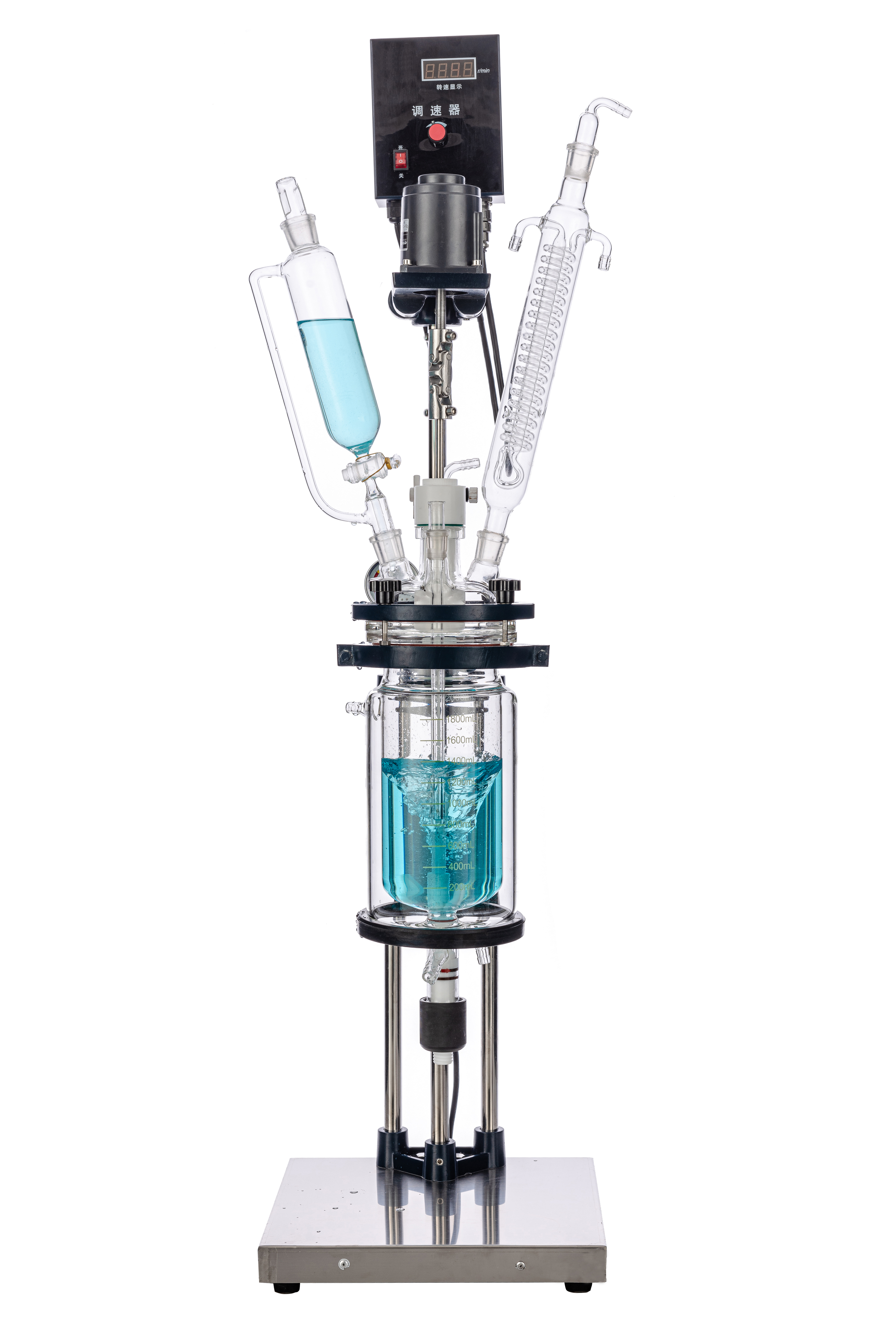 雙層玻璃反應釜為雙層玻璃設計,內(nèi)層放入反應溶媒可做攪拌反應,夾層可通上不同的冷熱源(冷凍液,熱水或熱油)做循環(huán)加熱或冷卻反應。在設定恒溫條件下,在密閉的玻璃反應器內(nèi),可根據(jù)使用要求在常壓或負壓條件下進行攪拌反應,并能做反應溶液的回流與蒸餾,是現(xiàn)代精細化工廠、生物制藥和新材料合成的理想中試、生產(chǎn)設備。