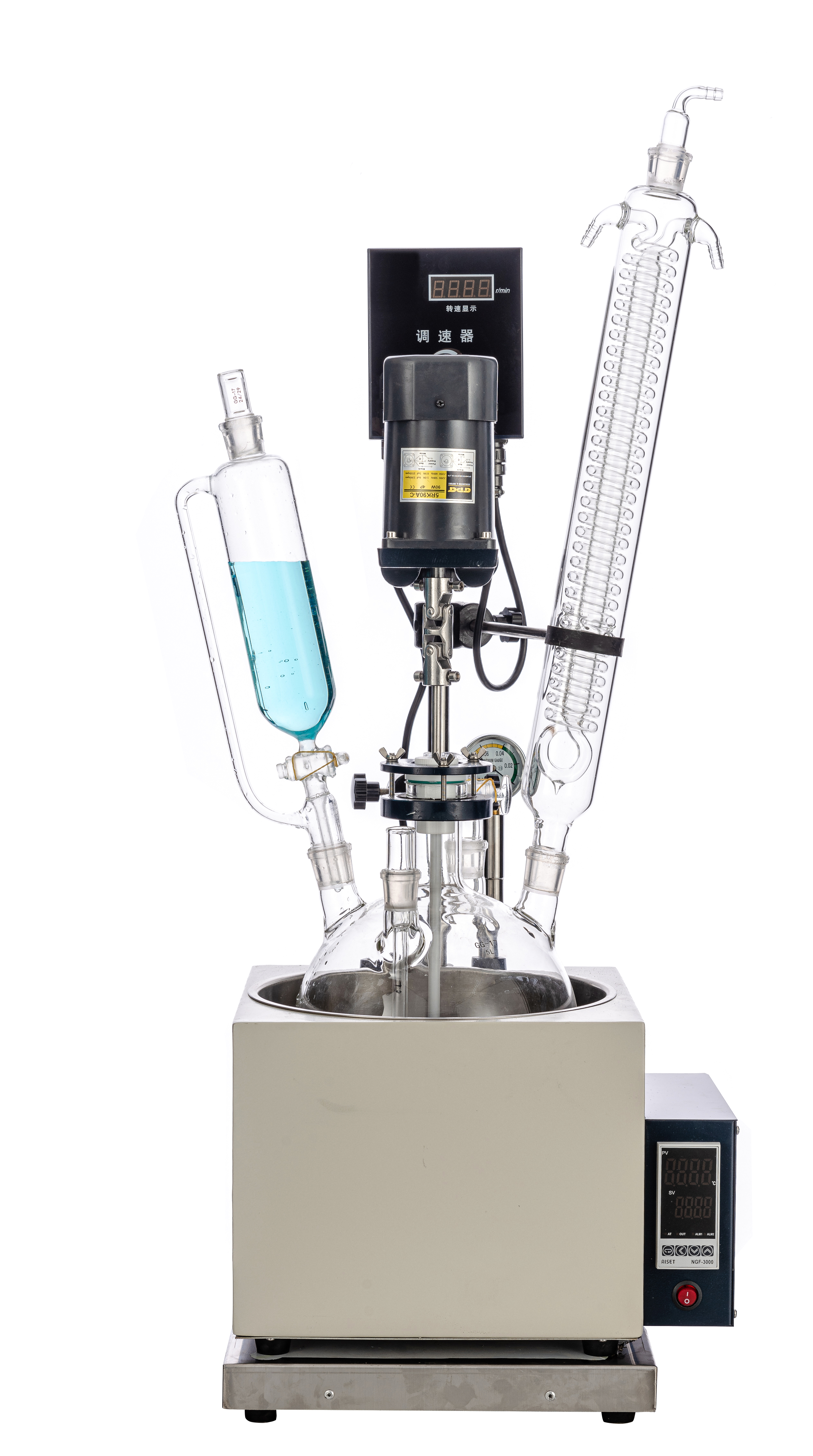 單層玻璃反應(yīng)釜內(nèi)層放置反應(yīng)溶媒可做攪拌反應(yīng),夾層通過(guò)冷熱源(冷凍液、水、導(dǎo)熱油)循環(huán),可使內(nèi)層實(shí)現(xiàn)恒溫加熱或冷卻反應(yīng),可控制反應(yīng)溶媒的蒸餾與回流,雙層玻璃反應(yīng)釜是現(xiàn)代合成化工、生物制藥和新材料制備的理想試驗(yàn)、生產(chǎn)設(shè)備。