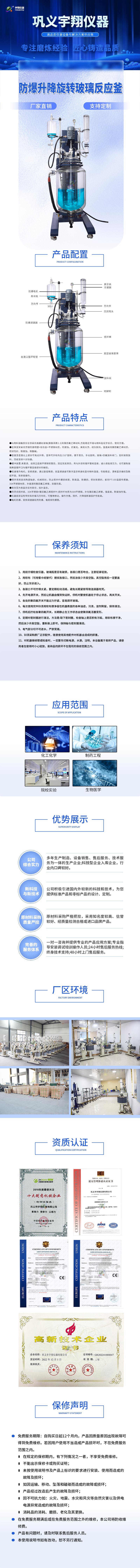 > 防爆升降旋轉玻璃反應釜 EXSJS212-50L