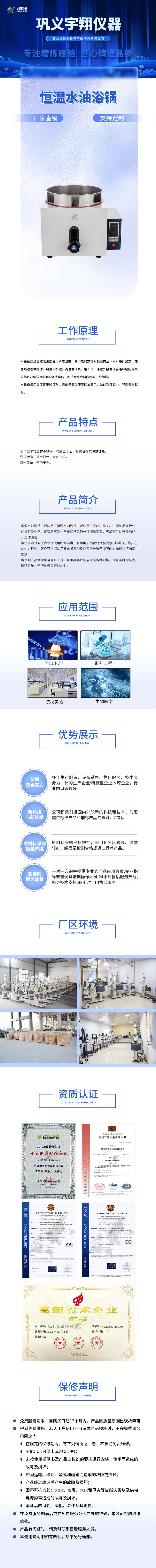 恒溫水油浴鍋廣泛應用于恒溫水油浴鍋廣泛應用于醫(yī)藥、化工、生物制品等行業(yè)的試驗及生產。是實驗室及生產車間常見的一種加熱裝置,可加配手動升降功能。 工作原理: 本設備通過溫控表設定使用所需溫度,利用電加熱管對鍋膽內水(油)進行加熱,在加熱過程中,客戶可根據使用要求將各種反應容器放置于鍋膽內對物料進行加間加熱。 本系列產品常用型號為1-50升,可根據客戶要求定制各種規(guī)格,也可定制加裝內循環(huán)系統(tǒng),使液體溫度更加均勻。 |
